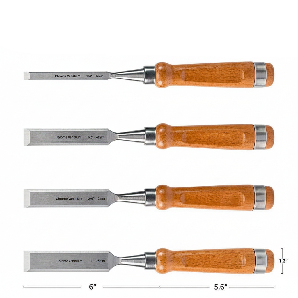 Conjunto Completo – Inclui 4 formões de tamanhos variados.